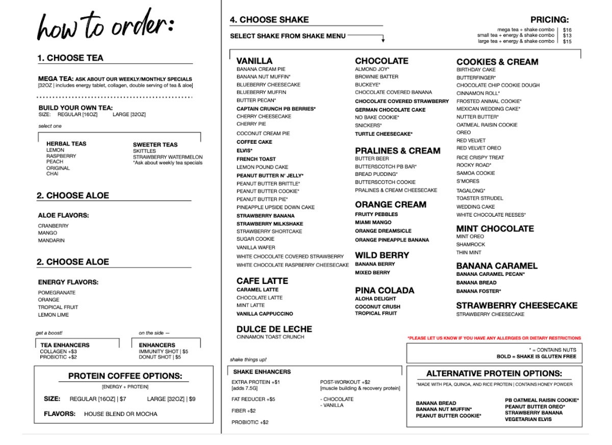 At Van Buren Nutrition, you’ll discover a diverse menu that focuses on delicious meal replacement shakes and energizing teas, crafted with high-quality ingredients designed to fuel your body. From the Banana Almond Mega Shake, which one customer raved about as being "DELICIOUS," to the creative seasonal specials that make each visit exciting, you’ll find an irresistible beverage to satisfy your cravings. You can even customize your shake with options like fat burners and extra protein, ensuring you get the perfect drink tailored to your health goals.